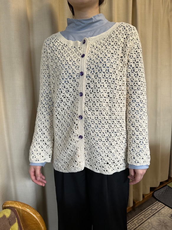 オーガニックコットン100%で作ったかぎ針編んだジャケット
